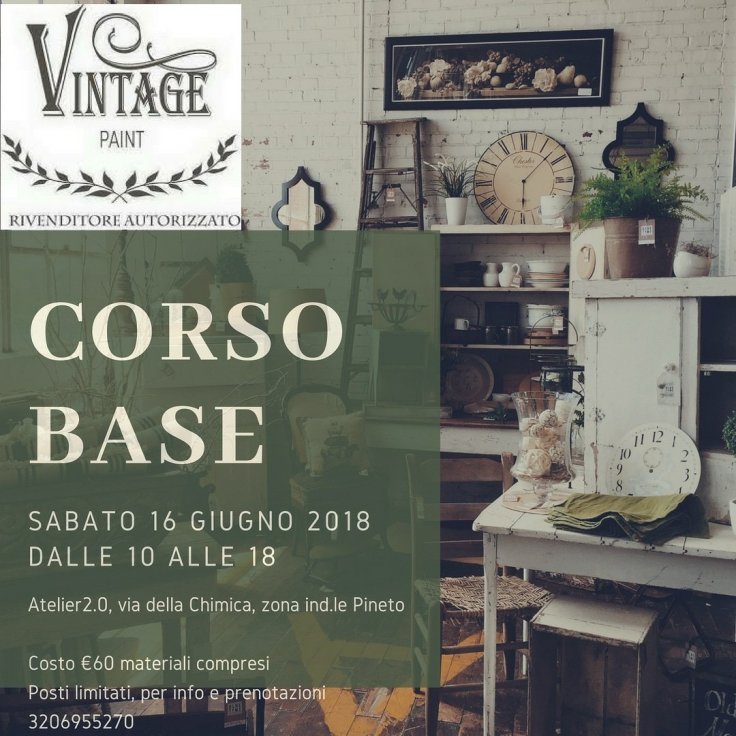 Dalle 10 alle 18 di sabato 16 giugno,presso l’atelier 2.0 in via della Chimica a Pineto, si terrà il corso base Vintage Paint, durante il quale impareremo come dipingere con queste fantastiche pitture.
