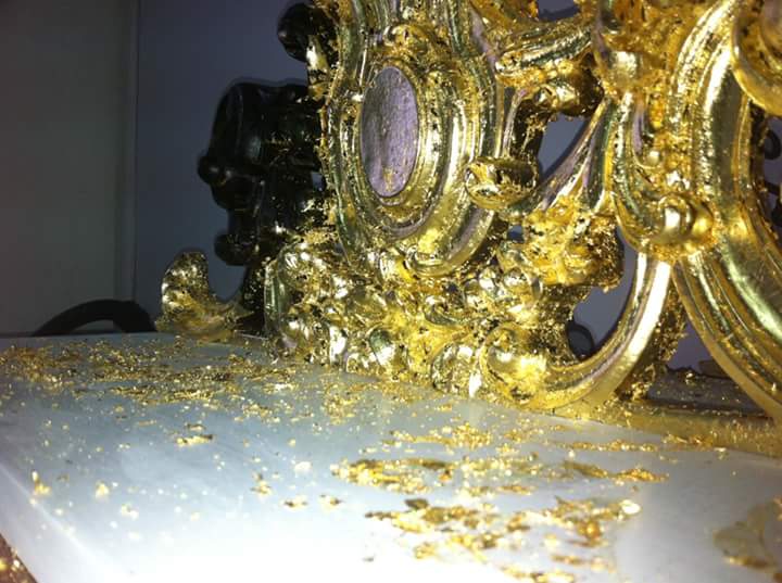 La decorazione con lamine d’oro ha origini antichissime e risale ai tempi delle civiltà antiche, greche e egizie. Si credeva che stendendo una lamina d’oro su alcuni oggetti, come le maschere mortuarie, questi potessero diventare eterni e accompagnare la memoria del defunto.